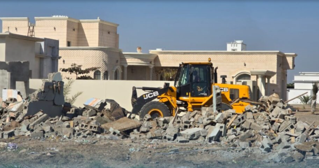 The move led to the demol of an unauthorized residence for expat workers in a modern residential neighborhood of Wilayat Saham aligning with the efforts to maintain urban planning standards and ensure compliance with housing laws.