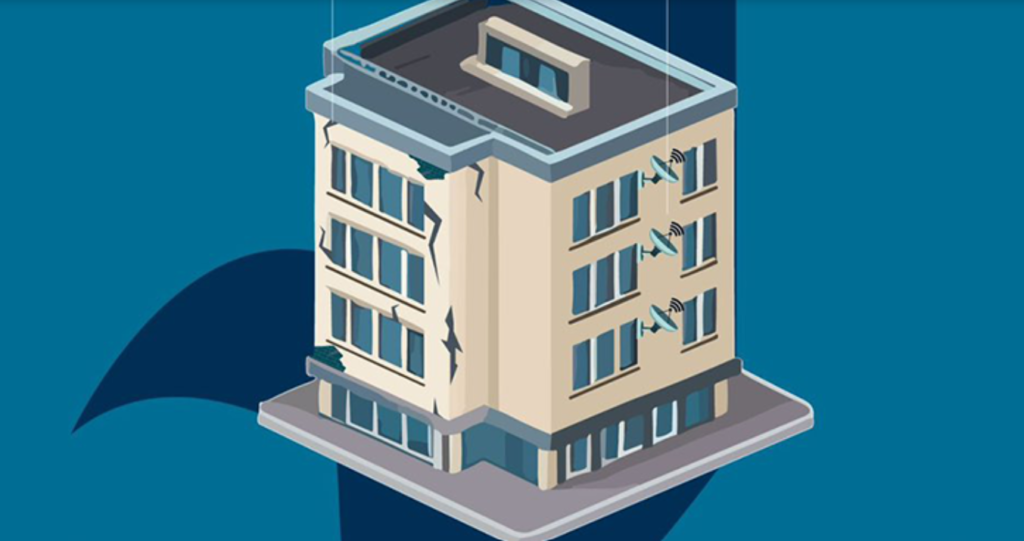 Cracks appearing in building cladding.