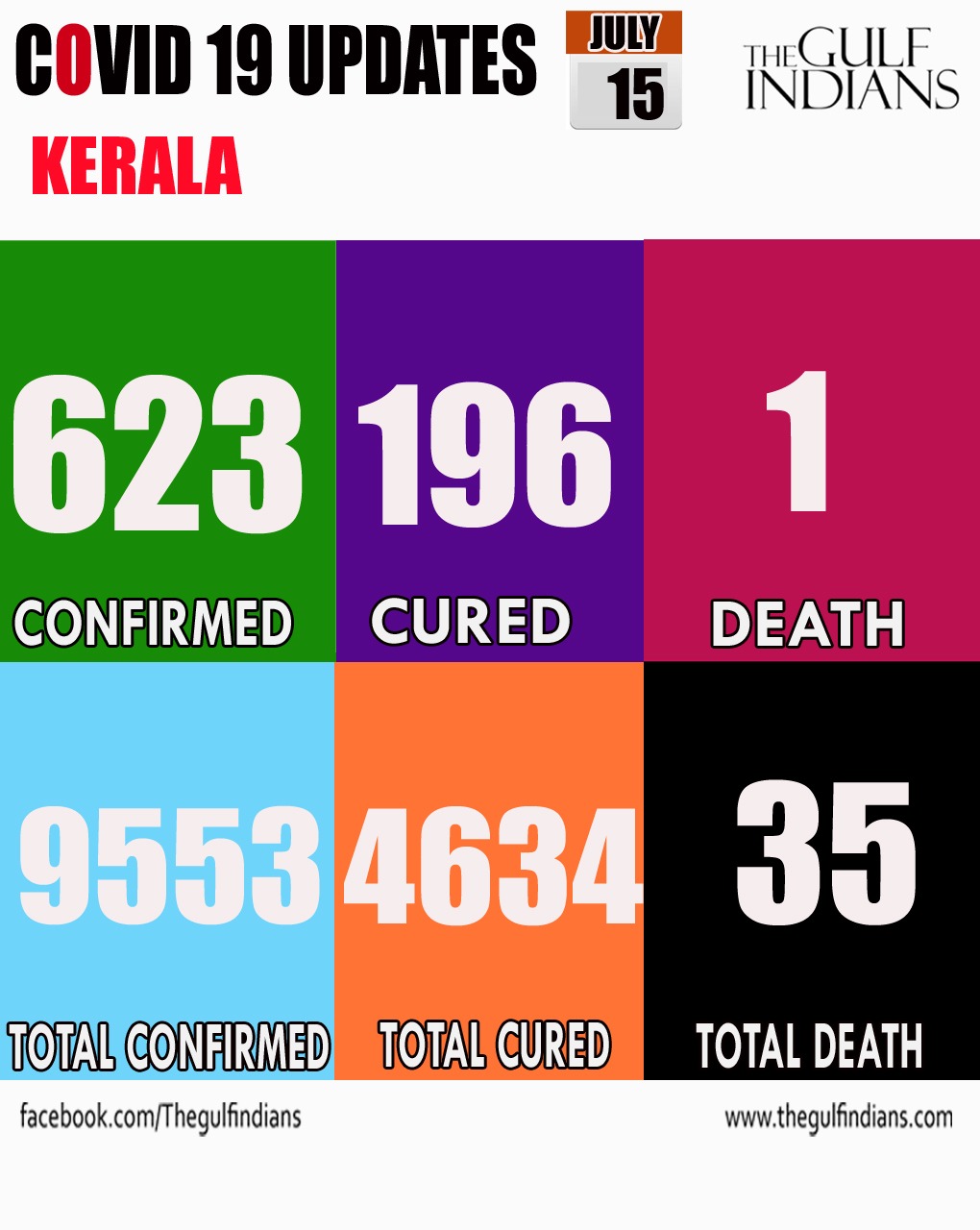 As many as 623 people tested positive for coronavirus in Kerala on July 15, Chief Minister Pinarayi Vijayan said during his press conference. An alarming number of 432 cases had contracted the disease through contact. While 96 came from abroad, 76 came from other states. 196 patients were cured of the deadly disease.